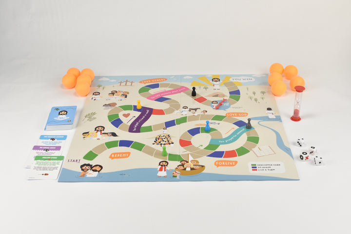 The Jesus Game is a tabletop board game for Christian families to have fun and learn about Jesus.